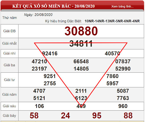Ví dụ minh họa soi cầu lô tam giác ngày 20/08/2020