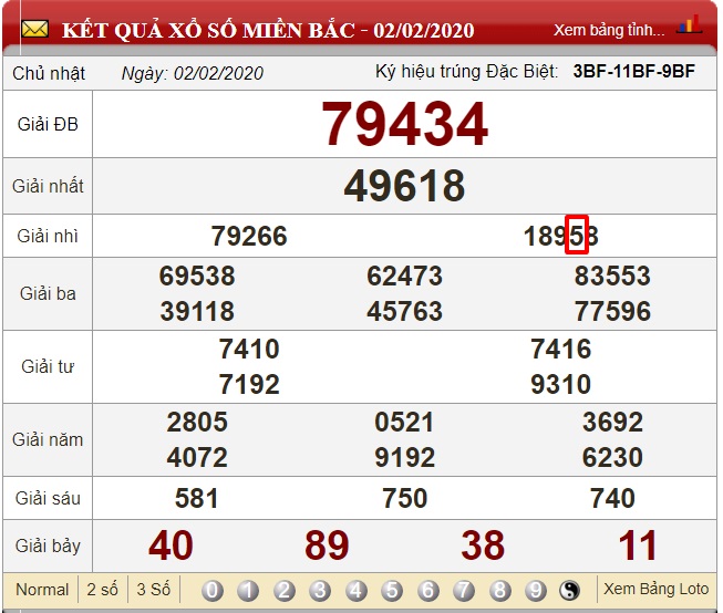 Ví dụ 1: Soi cầu đề miền Bắc dựa vào đề về ngày thứ 5 dựa vào bảng kết quả xổ số của ngày 02/02/2020.