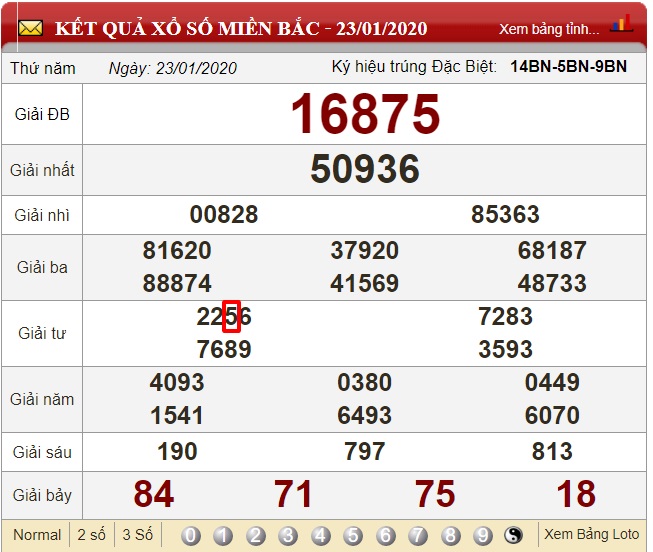 Ví dụ 1: Soi cầu đề miền Bắc dựa vào đề về ngày thứ 5 dựa vào bảng kết quả xổ số của ngày 23/01/2020.