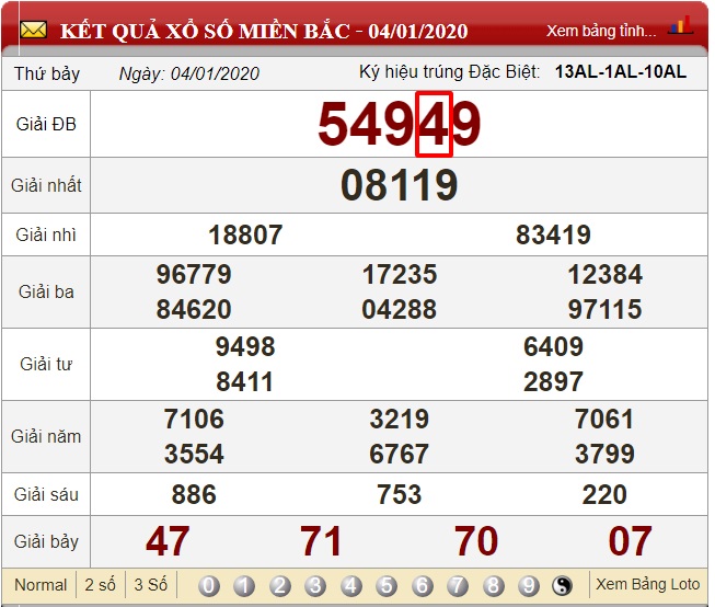 Ví dụ 1: Soi cầu đề miền Bắc dựa vào đề về ngày thứ 5 dựa vào bảng kết quả xổ số của ngày 04/01/2020.