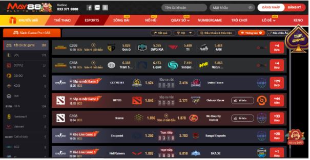 Hiển nhiên cá cược thể thao chính là thế mạnh của nhà cái. May88 không chỉ tích hợp hàng ngàn trận đấu lớn nhỏ trên thế giới mà còn đầu tư rất nhiều kèo cược để mọi người lựa chọn. Bên cạnh bóng đá thì bạn có thể tìm những môn thể thao sở trường của mình như: Bóng chuyền, bóng rổ, bóng chày, bóng bầu dục, cầu lông, đua xe,… Nhà cái cũng có cả khu vực cược Esport với các trò LOL, DOTA, FIFA,… dành cho những người yêu mến thể thao điện tử.