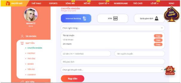 Nhà cái hỗ trợ rất nhiều hình thức để nạp tiền