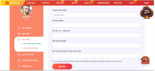 - Bước 3: Sau khi điền xong thông tin, bạn nhấp chọn ô Rút tiền và chờ hệ thống xử lý. MAY88 sẽ chuyển tiền về các bạn chỉ trong vài phút.