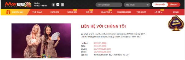 Đội ngũ nhân viên của May88 luôn hoạt động 24/7 bất kể lễ tết. Do đó các bạn có thể nhắn tin, gọi điện bất cứ lúc nào có vấn đề cần hỗ trợ. Nhà cái cũng đã phát triển nhiều kênh chăm sóc như: Hotline, Zalo, Chat Live, Email,…