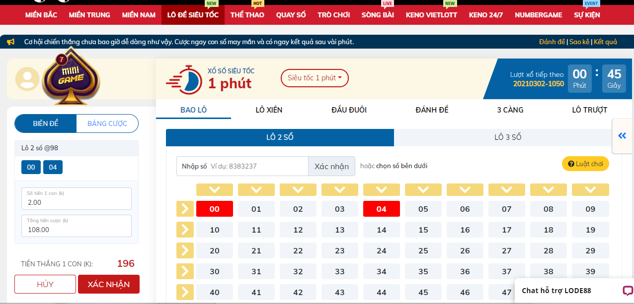 Dưới đây là cách đặt cược lô đề siêu tốc tại nhà cái Lode88: